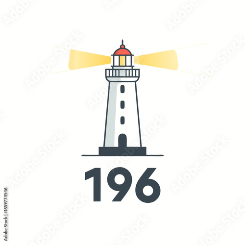 Modern flat design lighthouse icon with a red top and the number 196 a minimalist graphic logo.