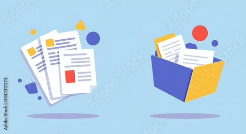 Modern flat illustration showing document organization and paper management with files and folder concept