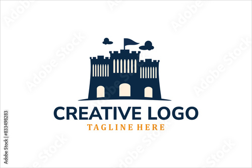 Modern Flat Unique castle logo vintage with sunset logo template illustration design