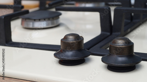 Modern gas cooktop in kitchen, closeup. Cooking appliance