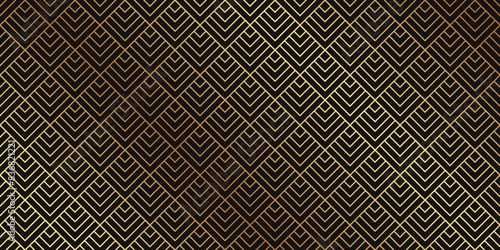 Modern geometric luxury black background with golden lines and rhombuses in art deco style.