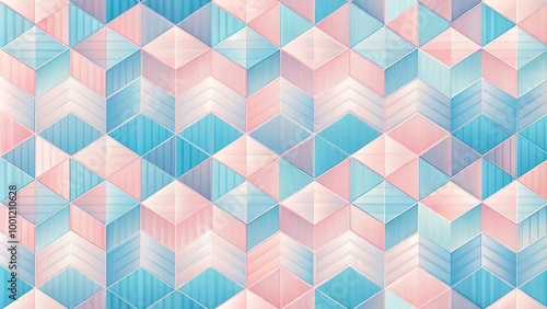 Modern geometric pattern featuring pastel pink and blue hues, abstract shapes, and subtle gradient effect, perfect for