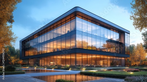 Modern Glass Office Building at Dusk