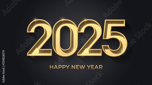 Modern golden 2025 typography with glowing sparkles and a Happy New Year message on a dark background, suitable for digital holiday cards, social media posts, marketing visuals, or celebration graphic