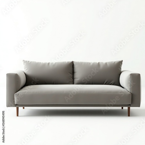Modern gray sofa in minimalist design, featuring plush cushions and wooden legs, ideal for contemporary living spaces.