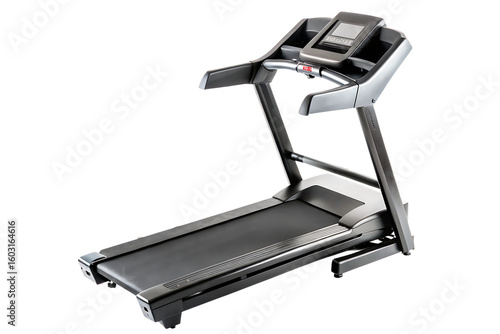 Modern gray treadmill with digital display isolated on a transparent background exercise