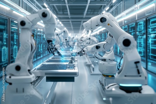 Modern High Tech Authentic Robot Arm, futuristic high tech laboratory,