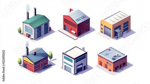 Modern industrial facility isometric icon with wide angle view for manufacturing concepts