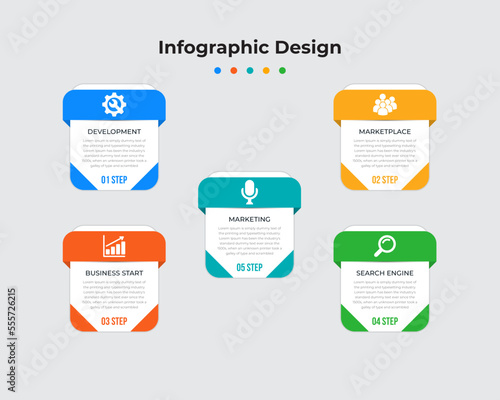 Modern Infographics Design, Business Infographics Template, 5 steps, Can be used for workflow layout, Vector illustration
