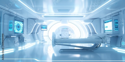 Modern interior futuristic clinic. White corridor