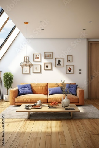 Modern interior of living room with sofa 3d render