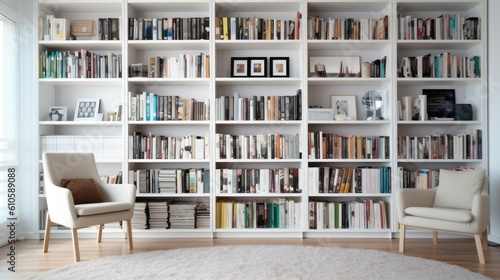 Modern interior study bookshelves on the wall room. Ai gerated