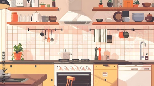 Modern Kitchen Interior Design Illustration With Yellow Cabinets