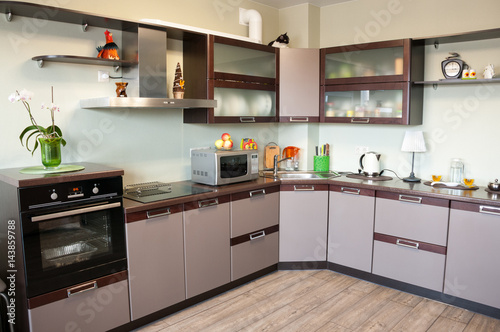 Modern kitchen interior made in brown tones
