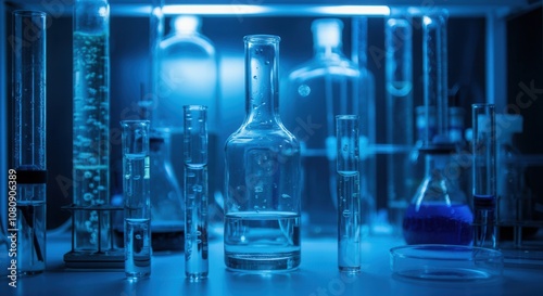 Modern laboratory glassware in scientific research setting
