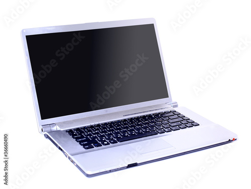 Modern laptop isolated on white with reflections