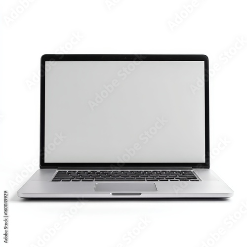 Modern laptop with blank screen. Ideal for website, app, or software presentations. Perfect for tech, business, and education contexts.