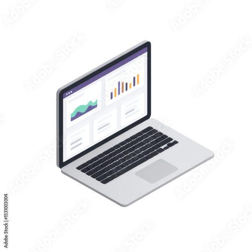 Modern Laptop with Data Visualization Screens for Business Analysis and Digital Marketing Strategy Development Transparent background or png