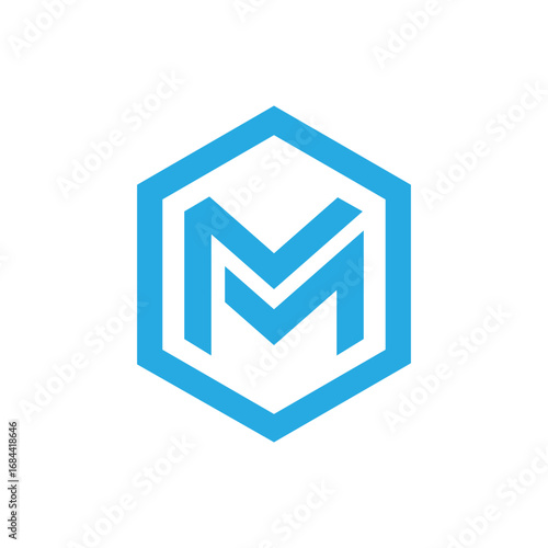 Modern Letter M Hexagon Logo – Minimalist Blue Design