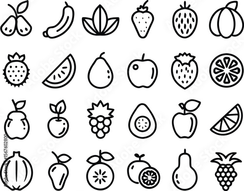 Modern Line Art Fruit Icons Editable Black and White Vector Set for Food Nutrition and UI Design