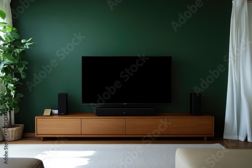 Modern Living Room Interior with Green Wall and Minimalist Furniture