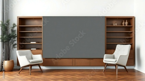 Modern living room with built in shelving and media unit