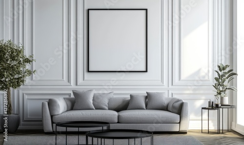 Modern Living Room with Minimalist Design and Empty Wall Art Frame