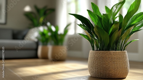 Modern living room with potted plants