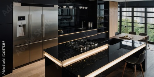 Modern Luxury Kitchen Island with Stainless Steel Appliances