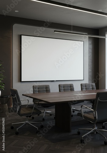 Modern Meeting Room Photo Empty Board Table Chairs Dark Elegant