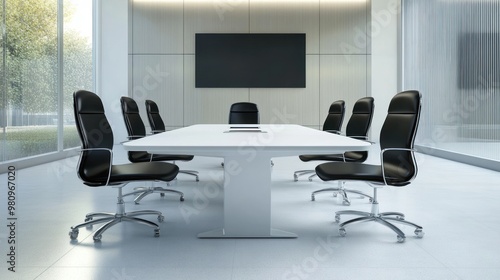 Modern Meeting Room with Black Leather Chairs