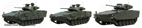 Modern Military Armored Fighting Vehicles on Transparent Background