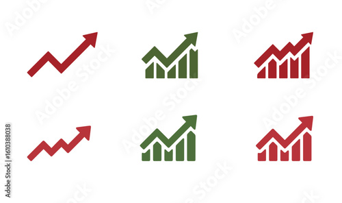 Modern Minimal Growth Chart Icons – Black and White Business Analytics Vector Set
