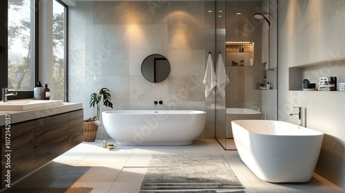 Modern Minimalist Bathroom with Two Bathtubs