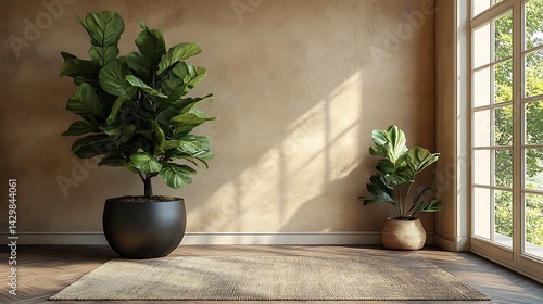 Modern minimalist home corner with plants high resolution image