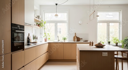 Modern Minimalist Kitchen Design Light Wood Cabinets and Island