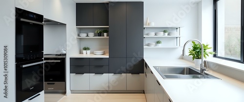 Modern Minimalist Kitchen with Stainless Steel Sink & Greenery