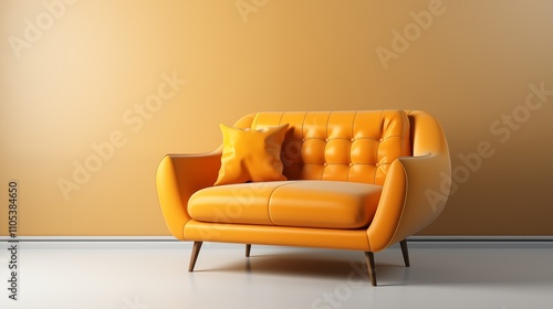 Modern minimalist living room with an orange velvet loveseat, bringing bold color and comfort to the space with a cozy, inviting design.