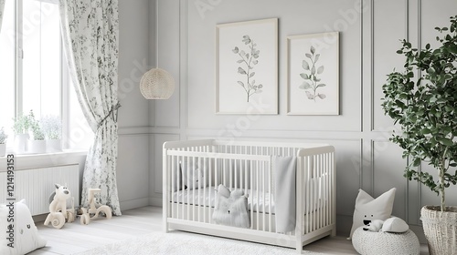 Modern Minimalist Nursery Room with Soft Light and Scandinavian Decor : Generative AI
