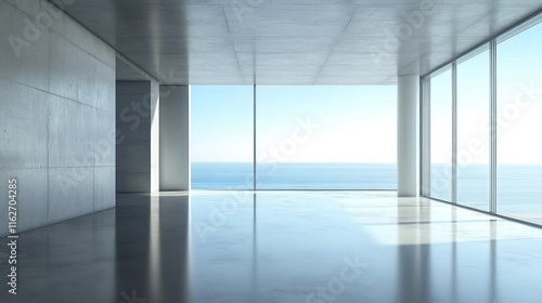 Modern Minimalist Ocean View Room Design: Concrete Walls and Expansive Windows