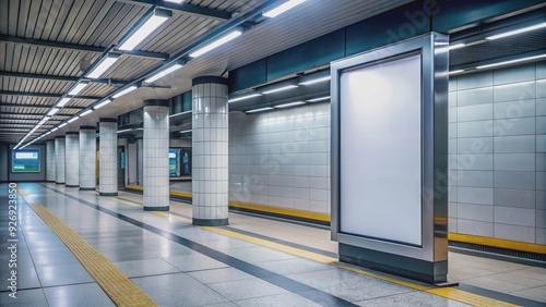 Modern minimalist poster mockup in subway station , render, high definition, blank, light border, subway, station