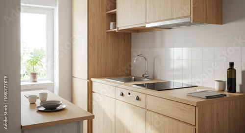 Modern Minimalist Wooden Kitchen Design with Natural Light and Functional Elements
