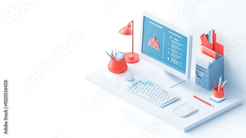 Modern Minimalist Workspace with Computer, Keyboard, and Supplies