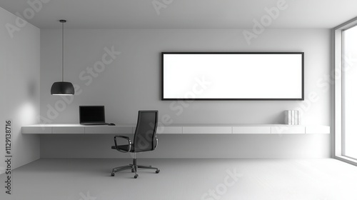 Modern Minimalistic Office Space with Empty Frame and Sleek Furniture Design
