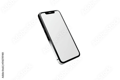 Modern mobile device with a blank screen, angled against a stark black background