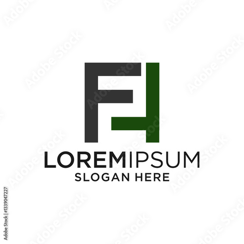 Modern Monogram Logo Design Featuring Dark Grey and Green Letters FH