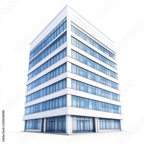 Modern office building, city backdrop, isolated, 3D render, real estate