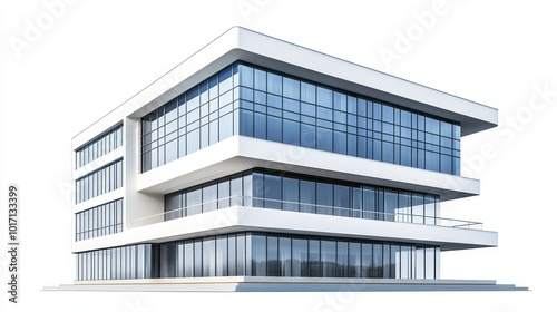 Modern office building isolated on white, featuring a clipping path for easy extraction.