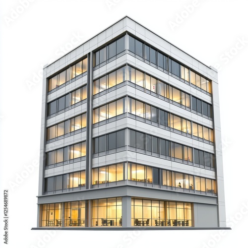 Modern Office Building with Illuminated Windows at Dusk Showcasing Contemporary Architectural Design and Urban Lifestyle
