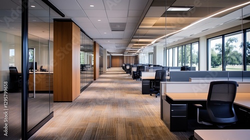 Modern Office Interior With Open Space Design and Large Windows : Generative AI